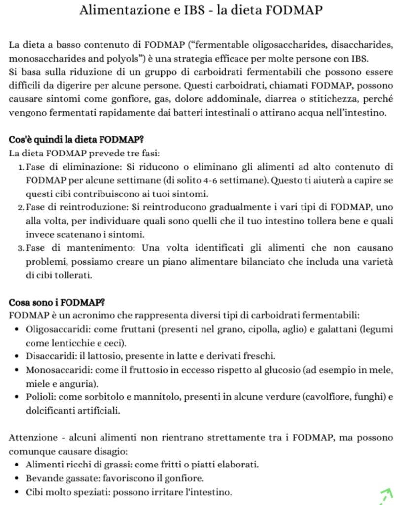 Guida breve per l’alimentazione con IBS